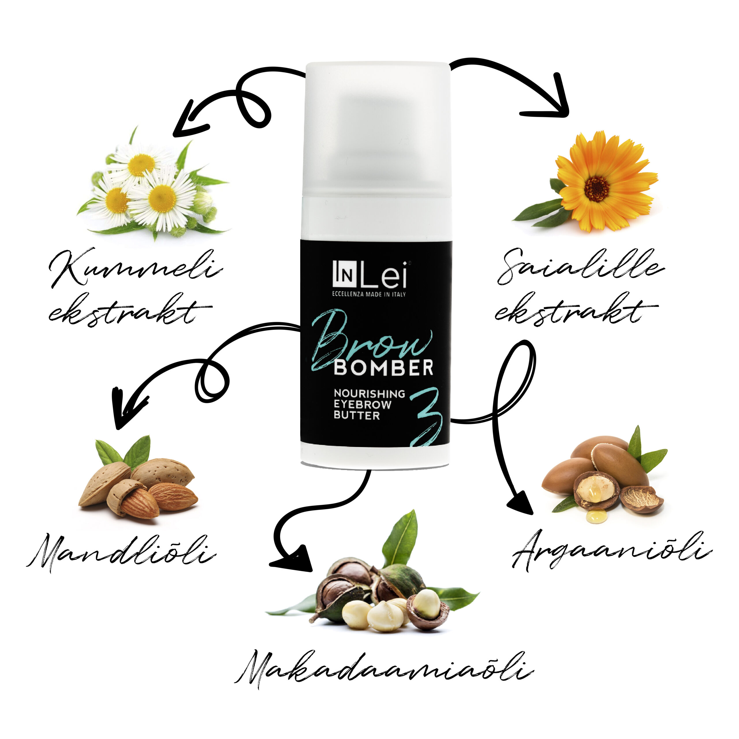 Brow Bomber sisaldab võimsat õlide segu, mis toidab, taastab, kaitseb, katab ja annab kulmukarvadele pehmuse.